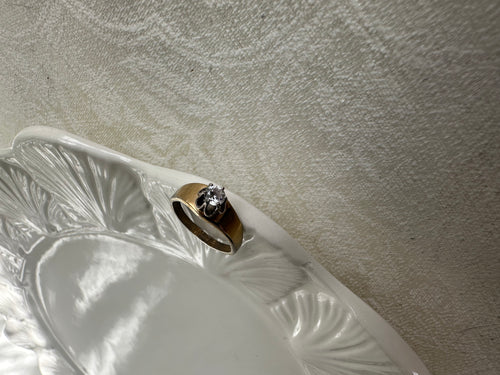 Antique Gold-Tone Solitaire Ring with Crown-Set Clear Crystal